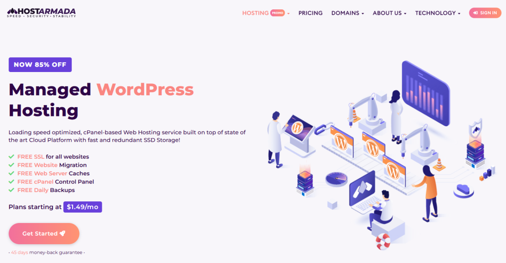 Update, configure and manage your WordPress website with HostArmada. Their experienced WordPress professionals will handle installation, updates, plugin and theme installations/updates, transfers, optimization, and more. HostArmada will take the stress out of managing your website so you can focus on creating fantastic content.